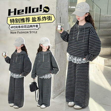 1*6收藏“2556款条纹连帽花边裤卫衣套装”
